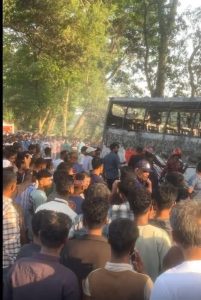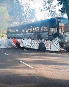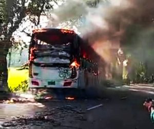 বিকেল সাড়ে ৪টার দিকে চলন্ত অবস্থায় সাকুরা পরিবহনের যাত্রীবাহী বাসটিতে হঠাৎ আগুন লেগে যায়। প্রাথমিক ধারণা করা হচ্ছে, শর্টসার্কিট থেকে আগুনের সূত্রপাত হয়েছে। মুহূর্তের মধ্যেই আগুন পুরো বাসে ছড়িয়ে পড়লে এলাকায় ব্যাপক আতঙ্ক সৃষ্টি হয়। তবে আগুন লাগার সাথে সাথে চালক বাসটি থামিয়ে দেন এবং যাত্রীরা দ্রুত বাস থেকে নেমে যেতে সক্ষম হন। ফলে বড় ধরনের কোনো হতাহতের ঘটনা ঘটেনি।