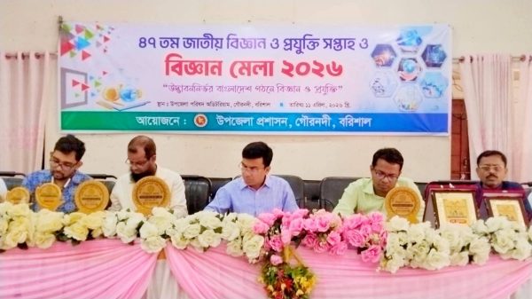 সৈয়দ নুর আহসান (গৌরনদী) বরিশাল প্রতিবেদক | ১১ এপ্রিল, ২০২৬ বরিশালের গৌরনদীতে উৎসবমুখর পরিবেশে ৪৭তম জাতীয় বিজ্ঞান ও প্রযুক্তি সপ্তাহ ও বিজ্ঞান মেলা ২০২৬ অনুষ্ঠিত হয়েছে। শনিবার (১১ এপ্রিল)